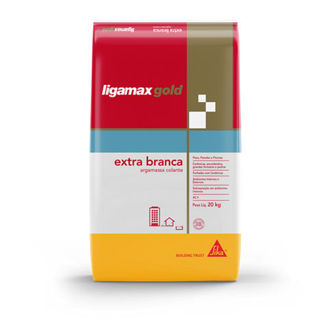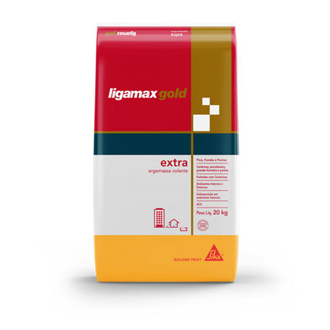 Ligamax Gold Extra é indicada para o assentamento de revestimentos cerâmicos, porcelanatos, grandes formatos e pedras naturais sobre emboço e contrapiso, superfícies de concreto tratado e alvenaria. Este produto é industrializado e classificado como ACII conforme ABNT NBR 14081. A utilização de argamassas do tipo AC II em fachadas deve estar especificada em projeto, limitada à edifícios com altura total de no máximo 15 metros, conforme NBR 13755.