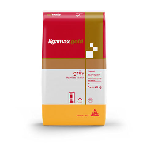 Ligamax Gold Grês é um produto especialmente desenvolvido para o assentamento de revestimentos dos tipos grês e porcelanatos. Este produto é industrializado e classificado como ACII conforme ABNT NBR 14081-1. A utilização de argamassas do tipo AC II em fachadas deve estar especificada em projeto, limitada à edifícios com altura total de no máximo 15 metros, conforme NBR 13755.
