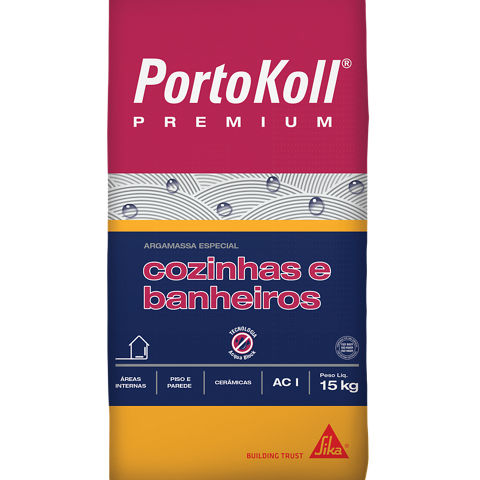 PortoKoll PREMIUM® Cozinhas e Banheiros contém aditivos que reforçam a proteção adicional contra umidade. Este produto é industrializado e classificado como ACI, conforme ABNT NBR 14.081-1
