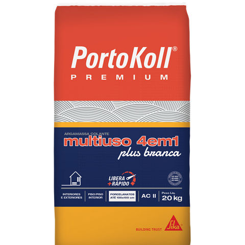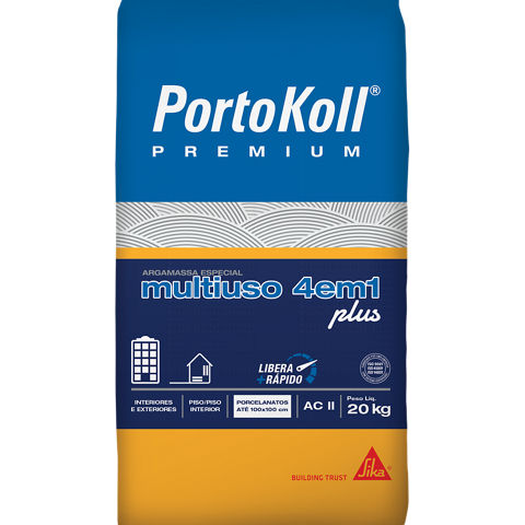 PortoKoll PREMIUM® Multiuso 4 em 1 Plus é uma argamassa desenvolvida para assentamento convencional e sobreposição de revestimentos para diversos tipos de aplicações e ambientes. Este produto é industrializado e classificado como ACII, conforme ABNT NBR 14.081-1.