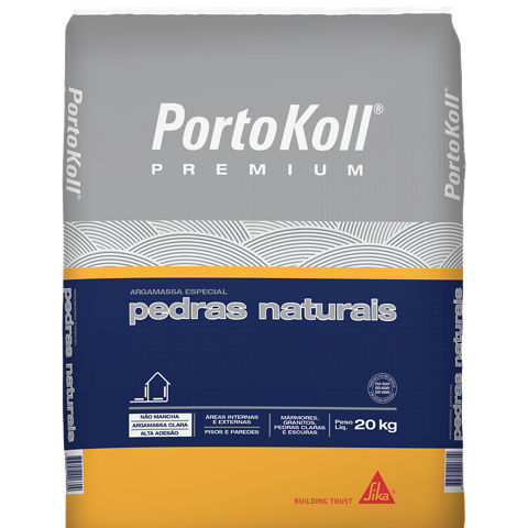 PortoKoll PREMIUM® Pedras NaturaisA Argamassa Pedras Naturais é uma argamassa especialmente desenvolvida para assentamento de pedras naturais de cores claras e escuras. Este produto é industrializado e classificado como ACII, conforme ABNT NBR 14.081-1