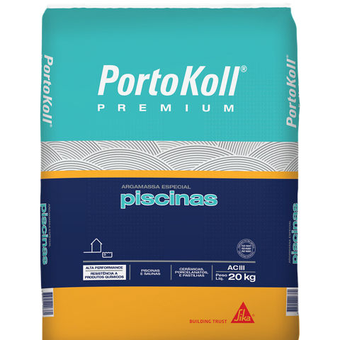 PortoKoll PREMIUM® Piscinas é indicada para assentar os mais diversos tipos de revestimentos em piscinas, com altissima aderência e desempenho. Este produto é industrializado e classificado como ACIII, conforme ABNT NBR 14.081-1