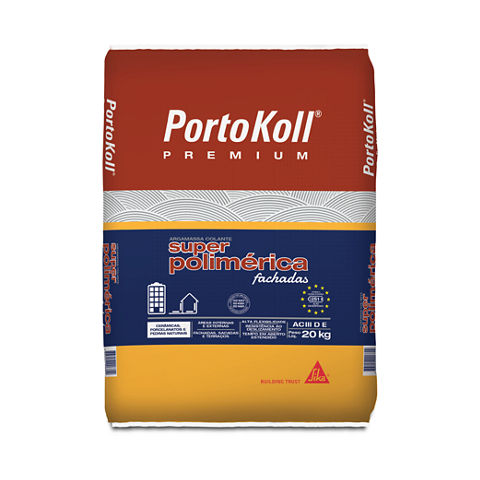 PortoKoll PREMIUM® Superpolimérica Fachadas é um produto desenvolvido especialmente para aplicações em fachadas, áreas externas e ambientes de alto tráfego e intensa movimentação. Atende as classificações das Normas: NBR 13755 Assentamento de Revestimento Cerâmicos em Paredes Externas e Fachadas. NBR 14.081 (ACIII D E) Assentamento de Revestimento Cerâmico - Classificação ACIII D E para Tipo, Deslizamento e Tempo em Aberto Estendido. EN 12004 (S1) Adesivos para Revestimentos Cerâmicos - Classificação S1 para Flexibilidade. ISO 13007 (C2 E) Assentamento de Revestimentos Cerâmicos - Classificação C2E para Tempo em Aberto Estendido.