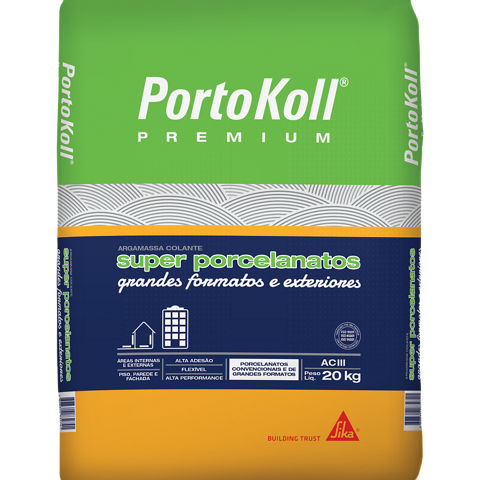 PortoKoll PREMIUM® Super Porcelanatos é uma argamassa de excelente desempenho desevolvida para o assentamento de grandes formatos. Este produto é industrializado e classificado como ACIII, conforme ABNT NBR 14.081-1