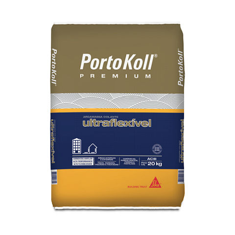 PortoKoll PREMIUM® Ultraflexível é indicada para assentar peças cerâmicas e porcelanatos convencionais (espessura superior a 7mm) em pisos e paredes de áreas internas externas. Indicada para ambientes e áreas de intensa movimentação ou ambientes muito amplos, onde existam vibrações e necessidade de resistência a tensões de cisalhamento entre placa e substrato adesivos. Este produto é industrializado e classificado como ACIII, conforme ABNT NBR 14.081-1