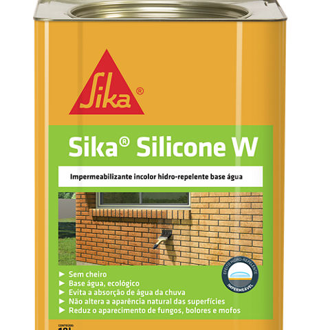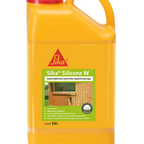 Sika® Silicone W é uma impregnação repelente à água (agente hidrofugante), à base de uma emulsão de silano e siloxano, dispersa em água, que protege e impermeabiliza as superfícies contra a absorção da água das chuvas, evitando eflorescências, manchas e o escurecimento do rejuntamento, sem alterar a aparência das superfícies.