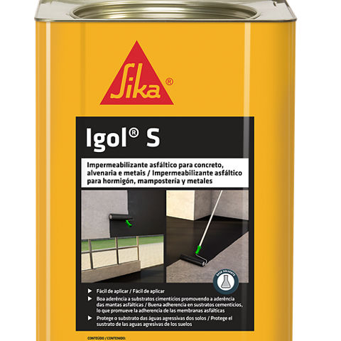 Igol® S é um impermeabilizante a base de asfaltos diluídos em solvente, monocomponente, para impermeabilização de concreto, alvenaria, madeira e para proteção de elementos metálicos. Também é indicado como primer nas impermeabilizações com manta asfáltica.