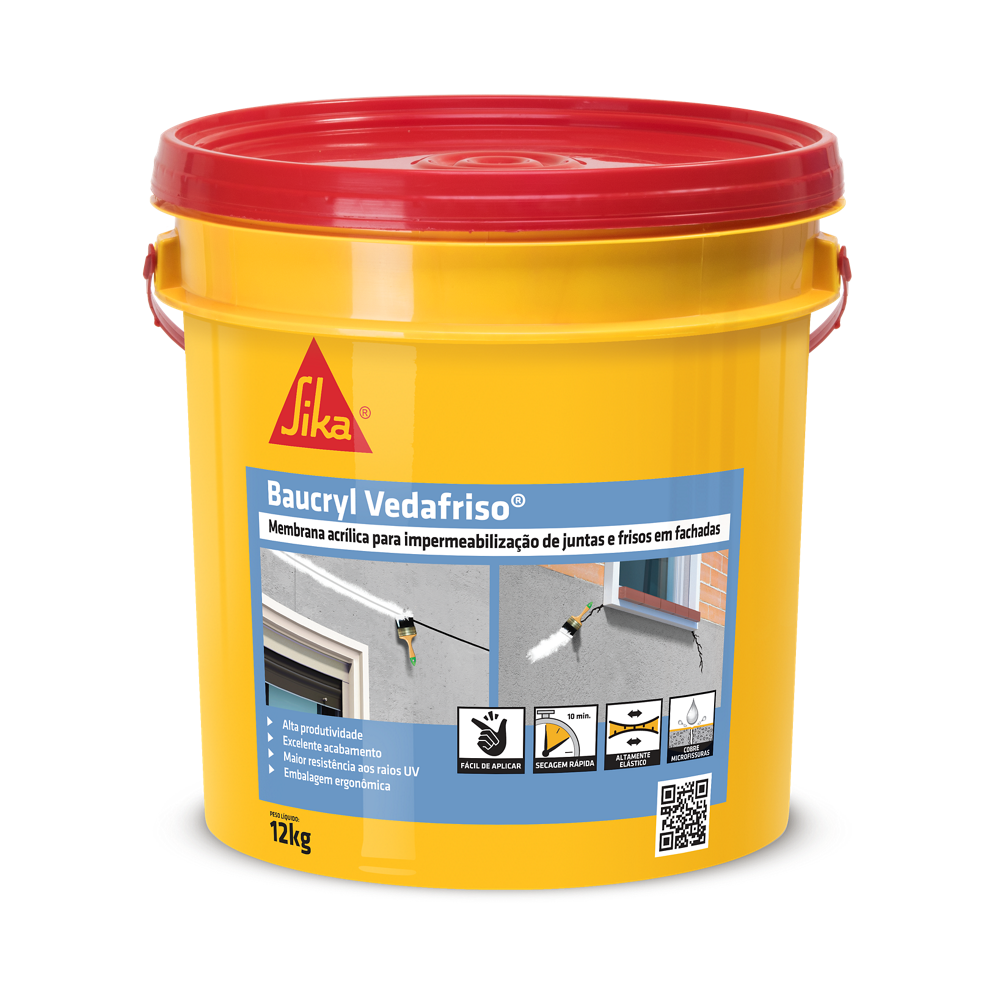 Baucryl Vedafriso® é uma emulsão de polímero acrílico elastomérico com cargas minerais e aditivos, monocomponente formando uma membrana impermeável, que suporta as fissurações naturais de retração de emboços e rebocos em fachadas.