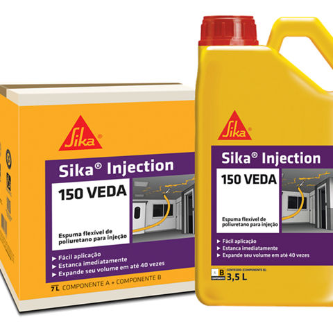 Sika® Injection-150 VEDA é uma resina de poliuretano para injeção, com baixa viscosidade, reação rápida e livre de solventes, que reage com a água para formar uma espuma flexível e densa com uma fina estrutura celular.